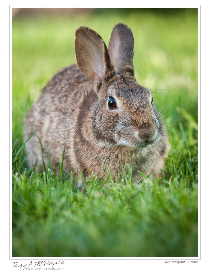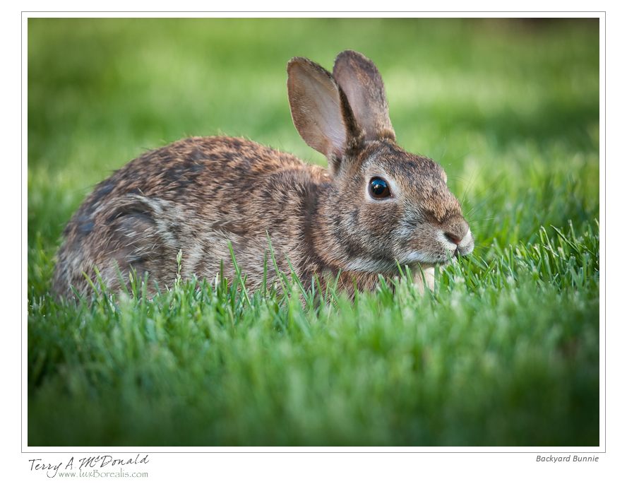 I took ownership of this new AF-S version of what has always been an amazing lens in the Nikkor line-up and it is just as good now as ever. Here are a few shots made last night in our backyard of our resident Eastern Cottontail. In fact, I have made two screenshots showing two raw files at 100% with no manipulation – both shot on a Nikon D200 I am currently borrowing 9prior to the arrival of the D800e.