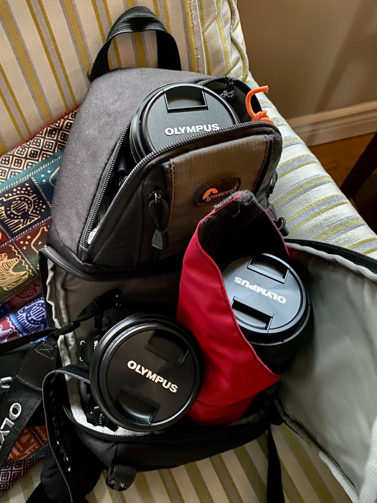 For me, this was a major reason for switching from full frame. I was betting on the OM-1 body and three lenses fitting into a LowePro sling bag I’ve had for years – the smaller of the two I have. The bigger one I bought for my full frame gear and it took my D800E, 24-85 walk-around zoom, 20mm, 105 Micro-Nikkor, and my 70-200/2.8. And it was heavy!