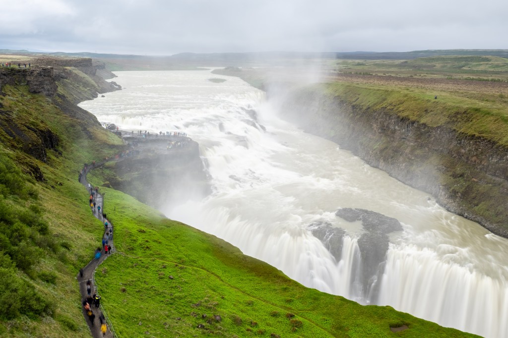 “Gull” = golden; “foss” = waterfall; “á” = river. Therefore, this is the Golden Waterfall on the River Hvít