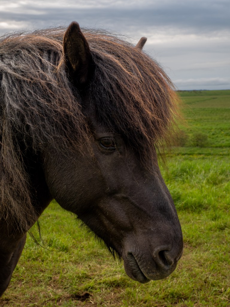 Ancient azure blue glacial ice leaps from the rich, blacks sands of eroded lava. Bright snow or blue sky contrasts with the soft reds, oranges and ochres of lava charged with iron and sulphur compounds. Emerald green grasses and mosses cling to beds of brown-black lava soils, punctuated with blazes of pink and yellow summer wildflowers. Brilliant white water cascades carve chasms into cliffs and gorges, spilling out over the landscape in the ever-changing ribbons of braided streams and rivers. Now, add to those scenes some stocky Icelandic horses, a pure and ancient hardy breed with their long, wind-blown manes, and some woolly white and black Icelandic sheep—ideal for anyone with a camera; an endless paradise for the die-hard landscape photographer.