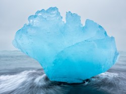 Breiðamerkursandur, also called Fellsfjara, is the black sand “Diamond Beach” across the Ring Road from Jokülsárlón glacial lagoon. It is here that icebergs large and small wash ashore, having calved off from Breiðamerkurjökull glacier and floated through Jokülsárlòn. As a photographer, you can well-imagine the photographic potential of combining clear, white, and blue ice with black sand and gravel. Add the waves piling in from the North Atlantic, and you have a few hours of photo riches to discover and create.