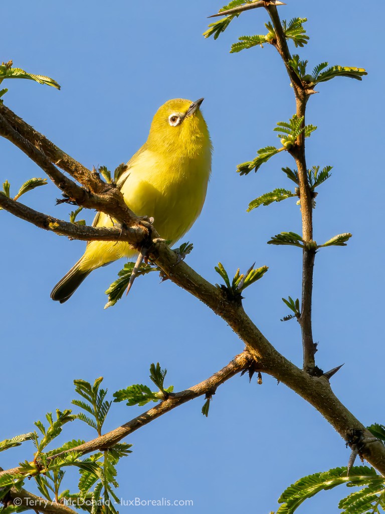 The same excitement accompanies the sighting of each of the many brilliantly-coloured bird species: the green and yellow flashes of little bee-eaters, the bright yellow Northern Yellow White-eye, bronze and variable sunbirds and lilac-breasted rollers. Under the dazzling tropical sun, their iridescence is awesome in the true sense of the word. Capturing their fleeting forms in just the right light with just the right background is the supreme challenge! I am always envious of birders who are ecstatic with an audible confirmation or even a fleeting glimpse. Bird photographers need a whole lot more to realize true success.