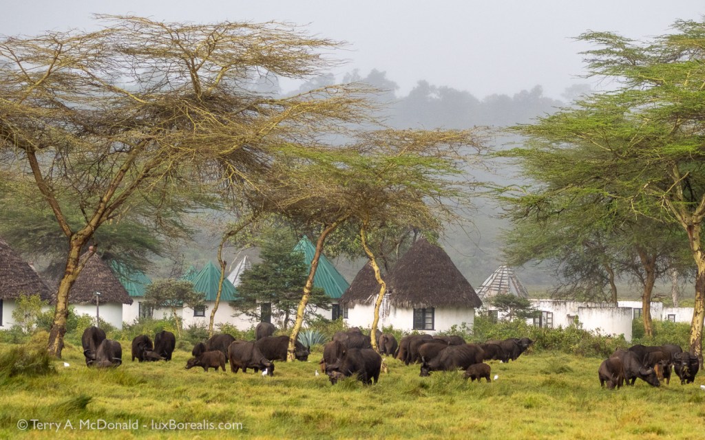 Despite being retired and on vacation, we decided to forgo the casual mornings and head out each morning at dawn for wildlife drives, taking a Thermos of milky Tanzanian tangawizi chai (ginger tea) with us. But one of the best opportunities we had for viewing wildlife was on our way into and through the park on our first afternoon. There is a distinct surge of excitement at the first encounter with giraffe, then zebra and Cape buffalo, and finally monkeys. Big beautiful, black and white Colobus monkeys with their white ‘beards’ and long white, fluffy tails, then Blue monkeys, deep in the shade and more difficult to successfully photograph.