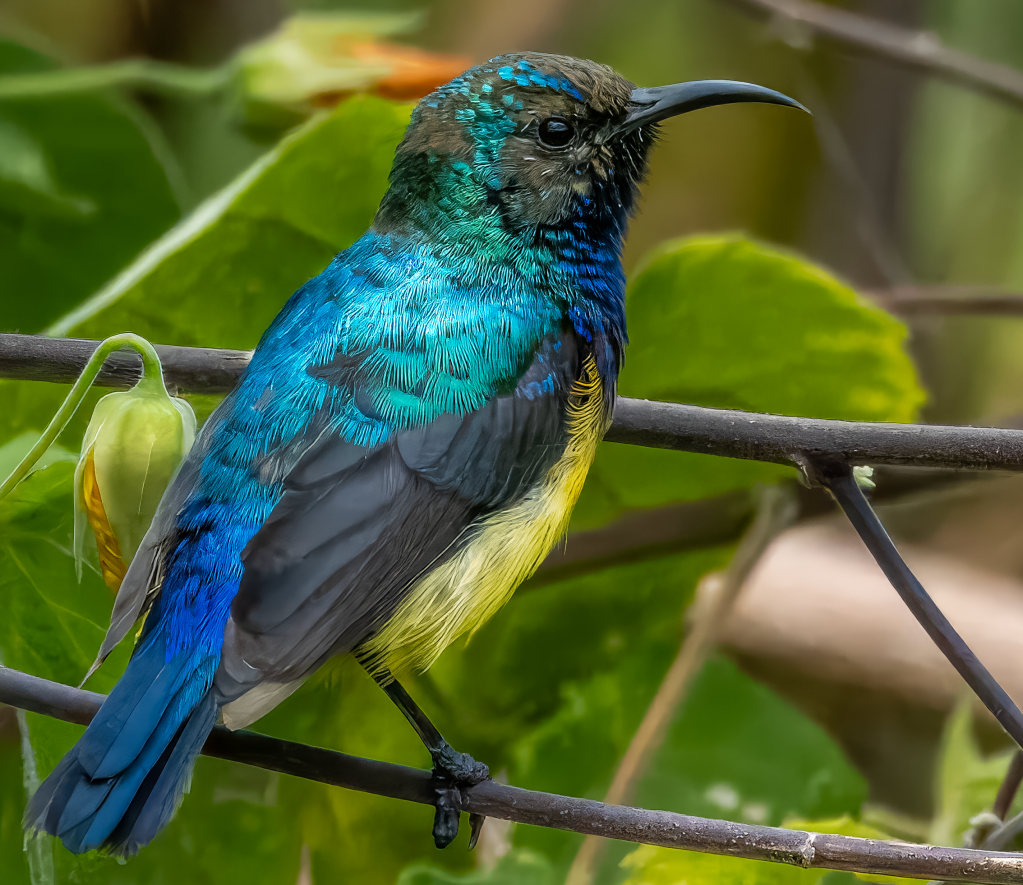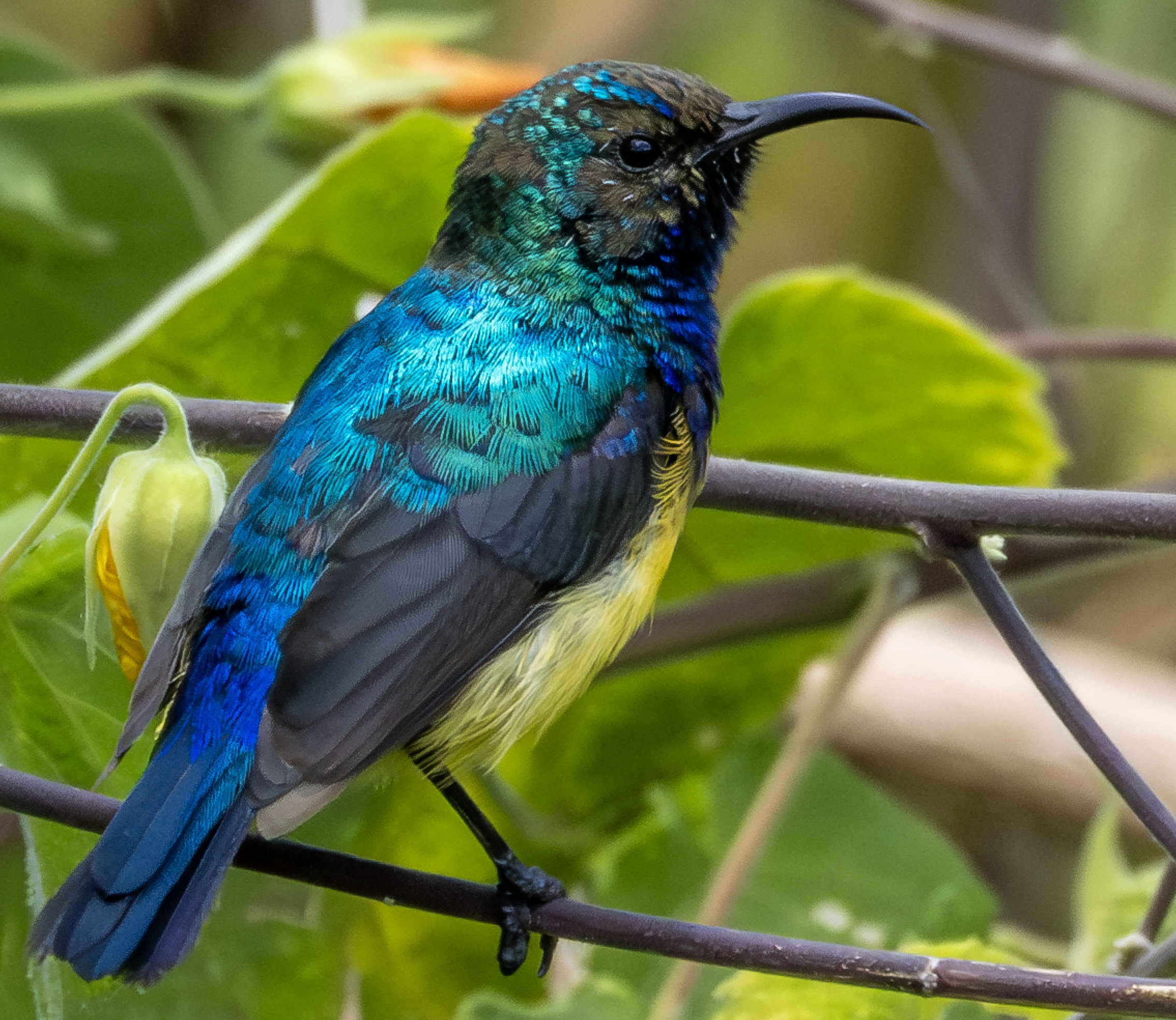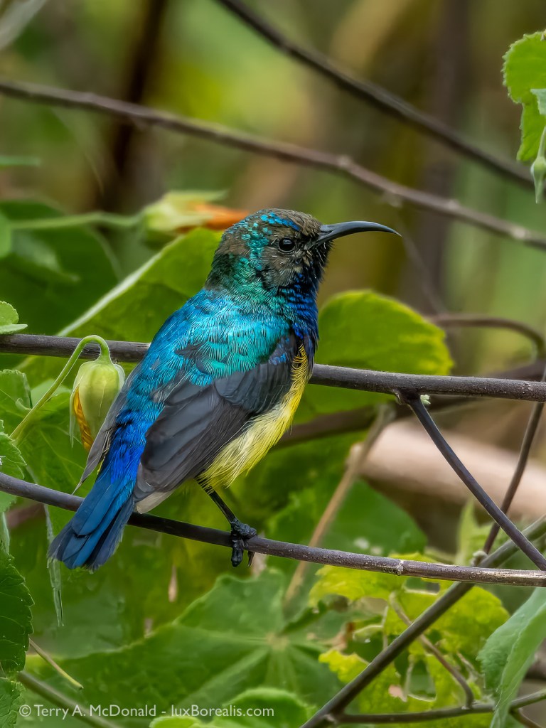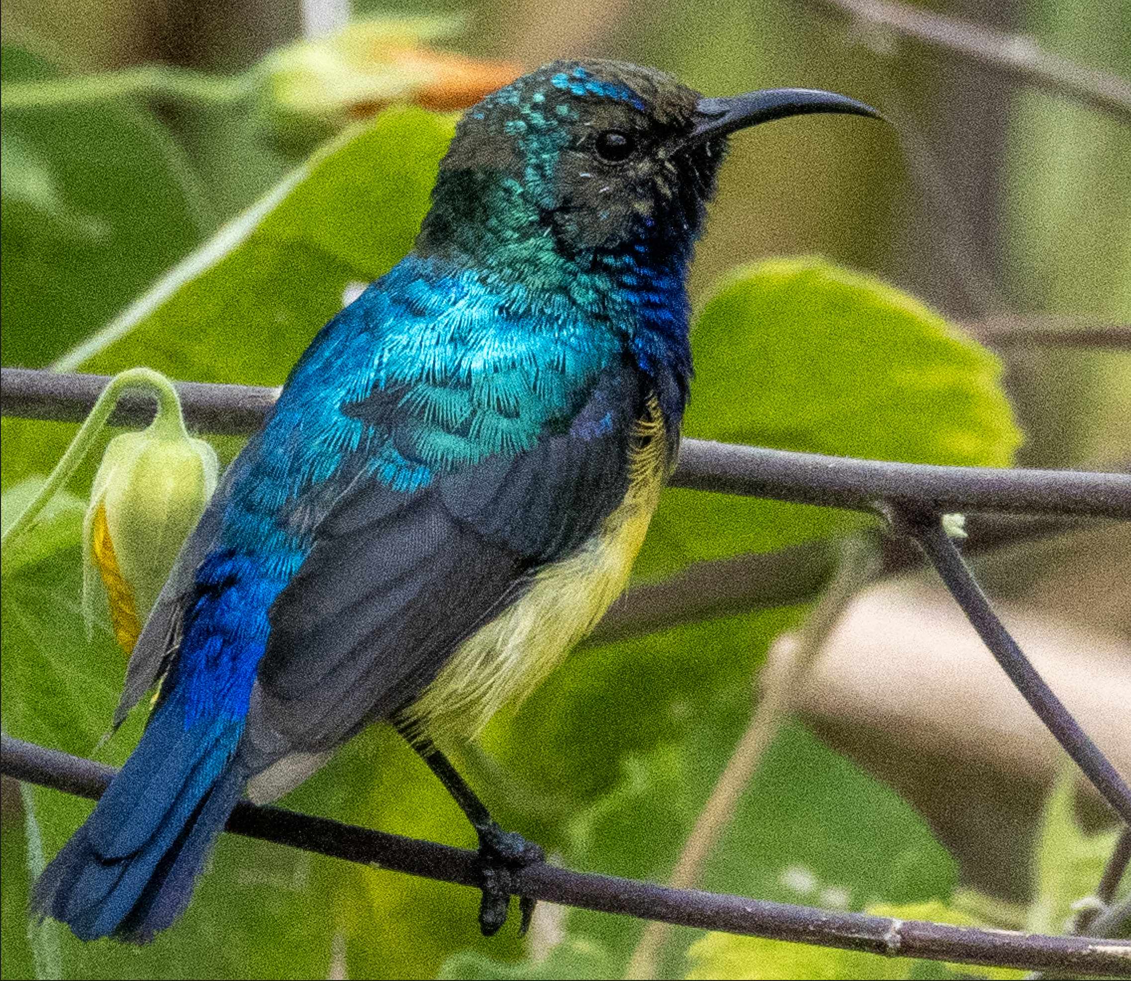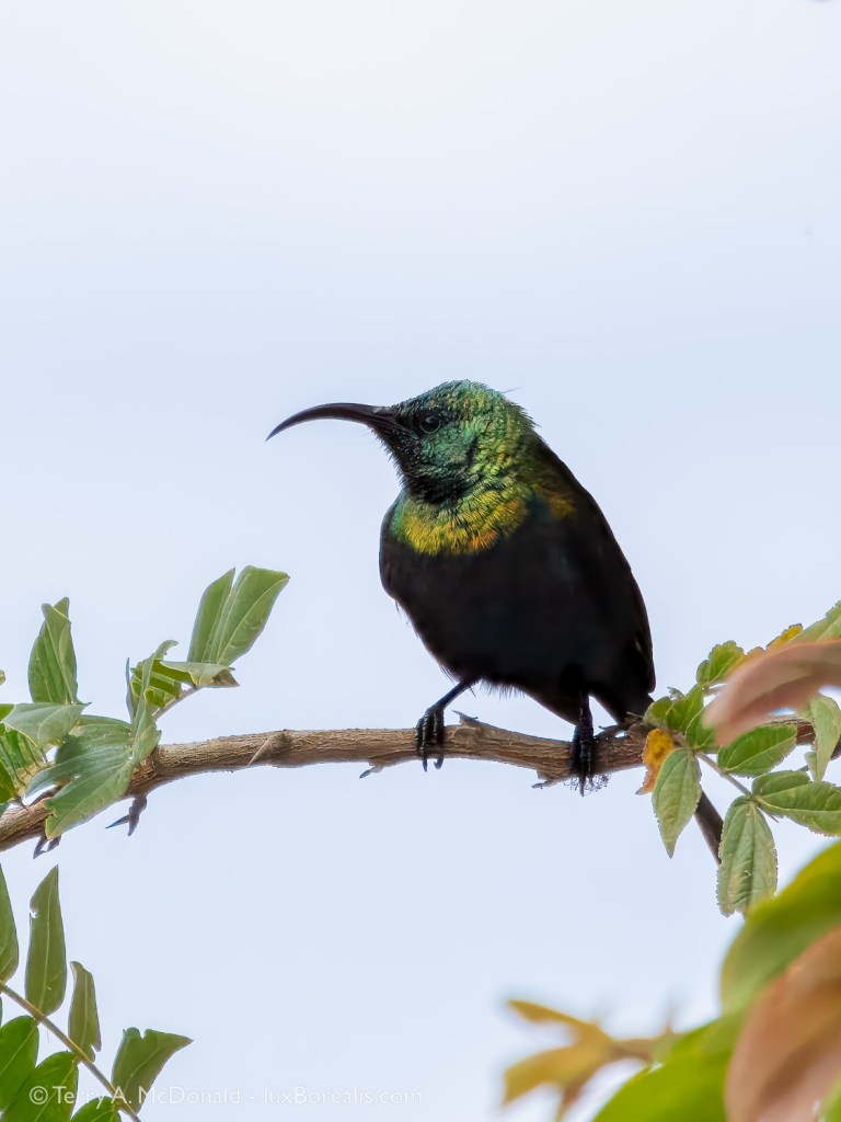 Sunbirds are beautiful, but they tend to do a lot of flitting about. Cloudy skies and dim light under the forest canopy forced me to use ISO 3200. However, Topaz Photo AI cleaned up the noise to provide a beautifully clean image.