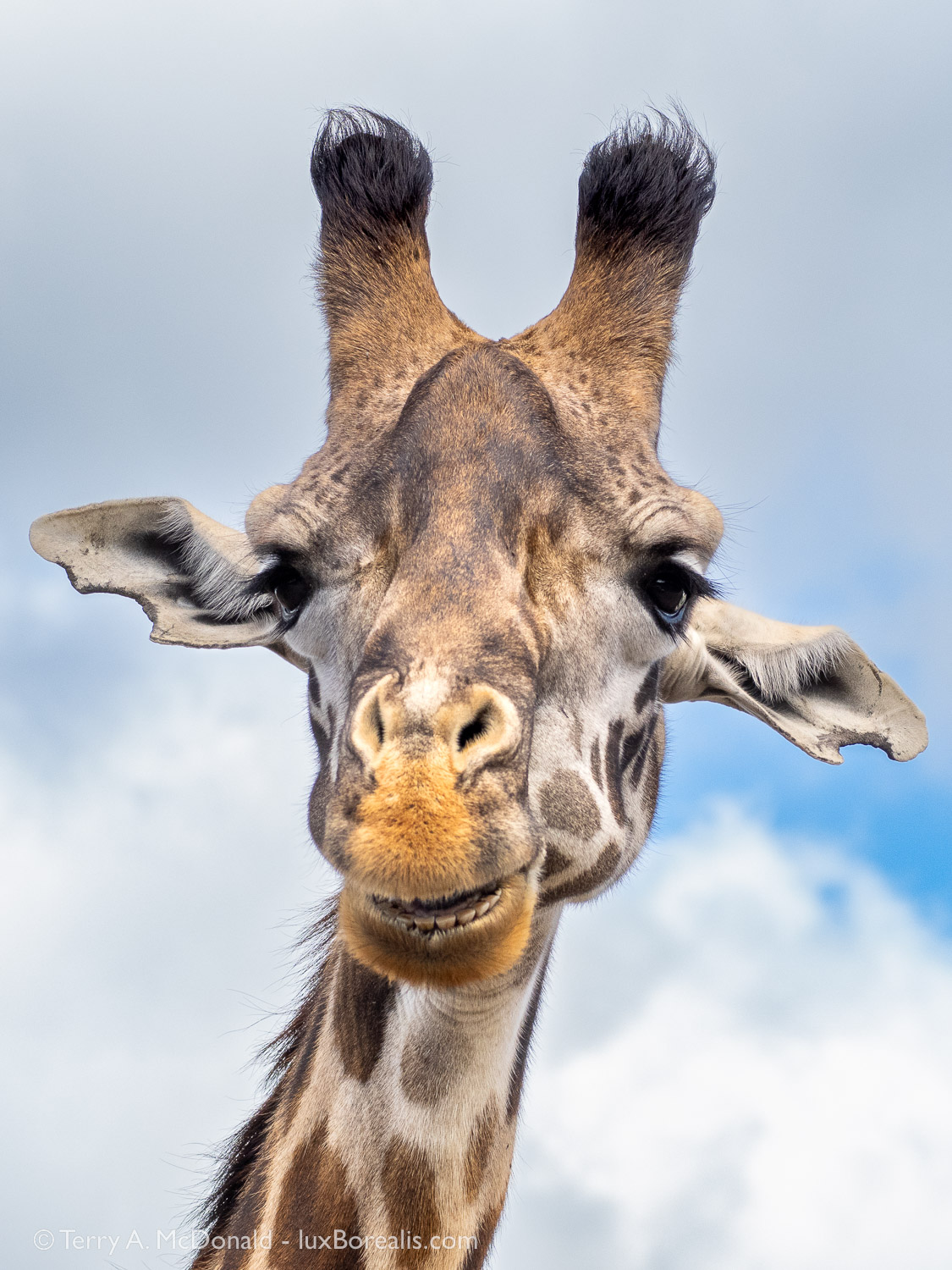 Creating this photo was a photographic balancing act. I wanted to use Hand-held High Res, but the giraffe would move in the brief time it took to create the file. I could have used a higher ISO, but the shutter speed would still be too low for HHHR. What to do. First and foremost—get the shot, then deal with the processing later. Upscaling 2x in Topaz solved the problem and gave me an 80mp tack sharp image.