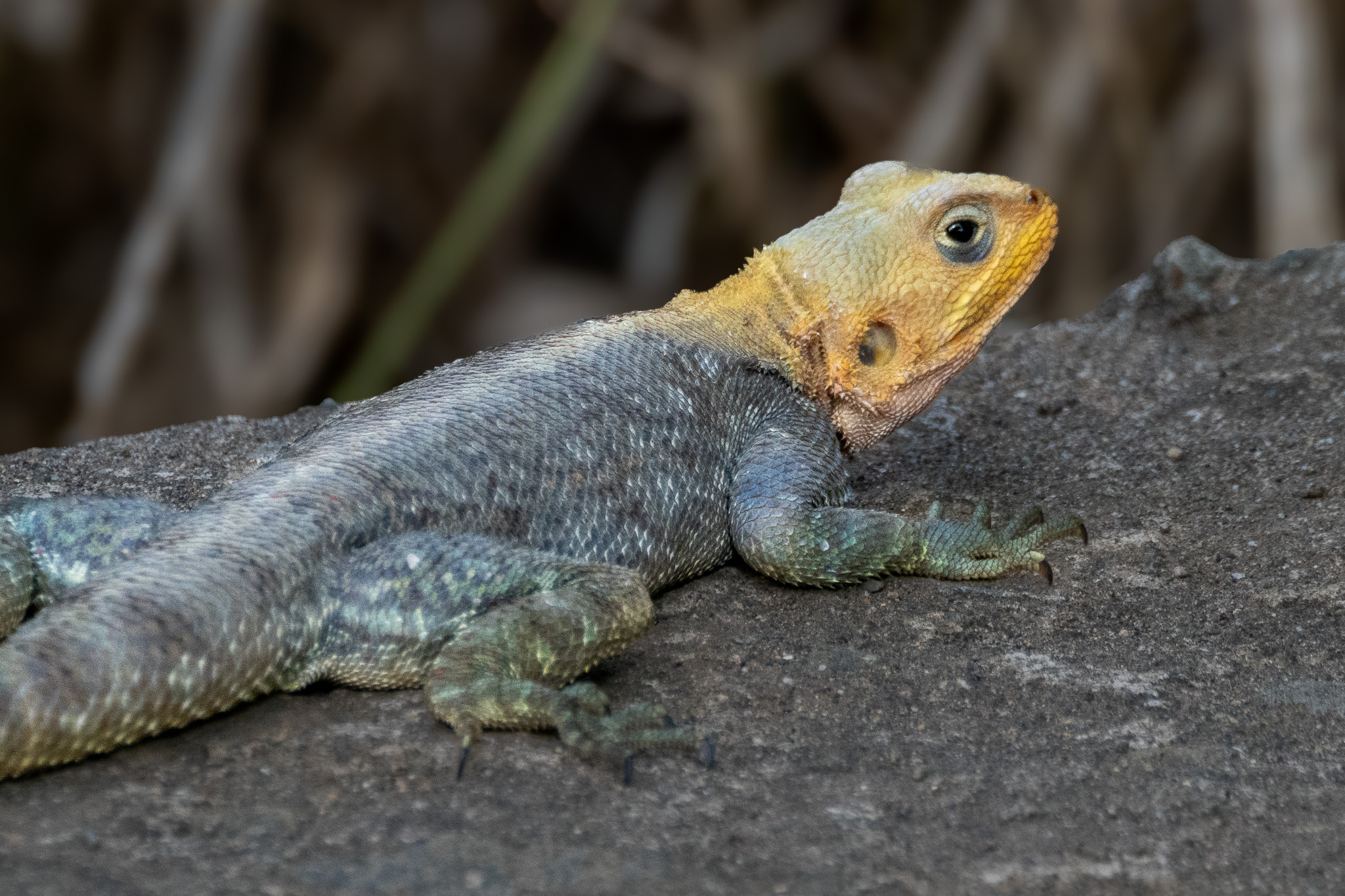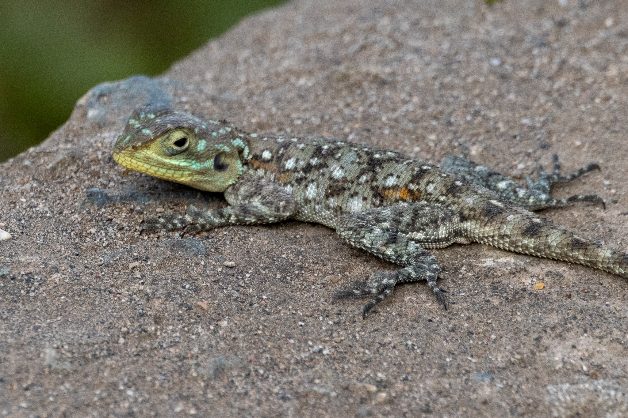 Lizards are fairly common in rocky areas, but to see a snake is uncommon. This one was sunning itself near the road, warming itself in the later afternoon sun. Only a few metres away were two green snakes, which we have yet to identify, actively hunting in the grass.