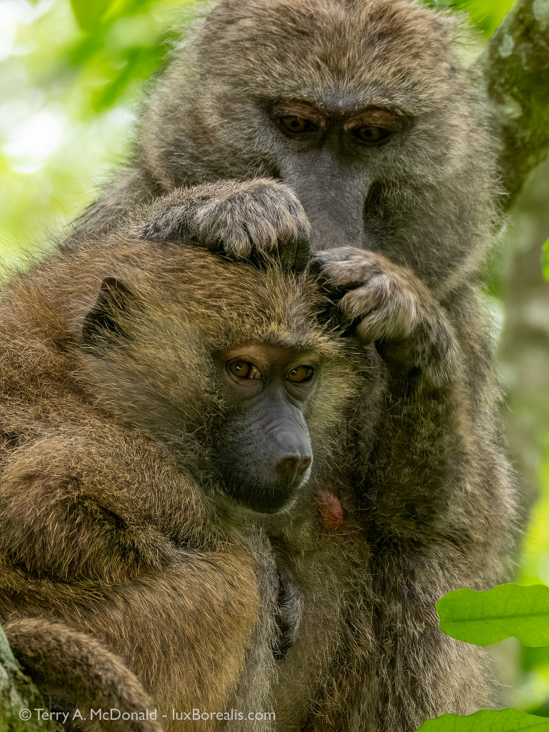 The typical safari-goer often doesn’t understand the needs of photographers in having clear sight-lines and enough light to stop even the smallest movements of animals and birds, and to prevent movement in the truck from ruining a great shot. Without other clients in the truck wanting to look-and-move-on, Laura and I had the luxury of patiently waiting and observing wildlife, giving us opportunities to ponder such things as how monkeys keep their fur so clean and soft and glossy-looking in such a dusty place, without using hair products!
