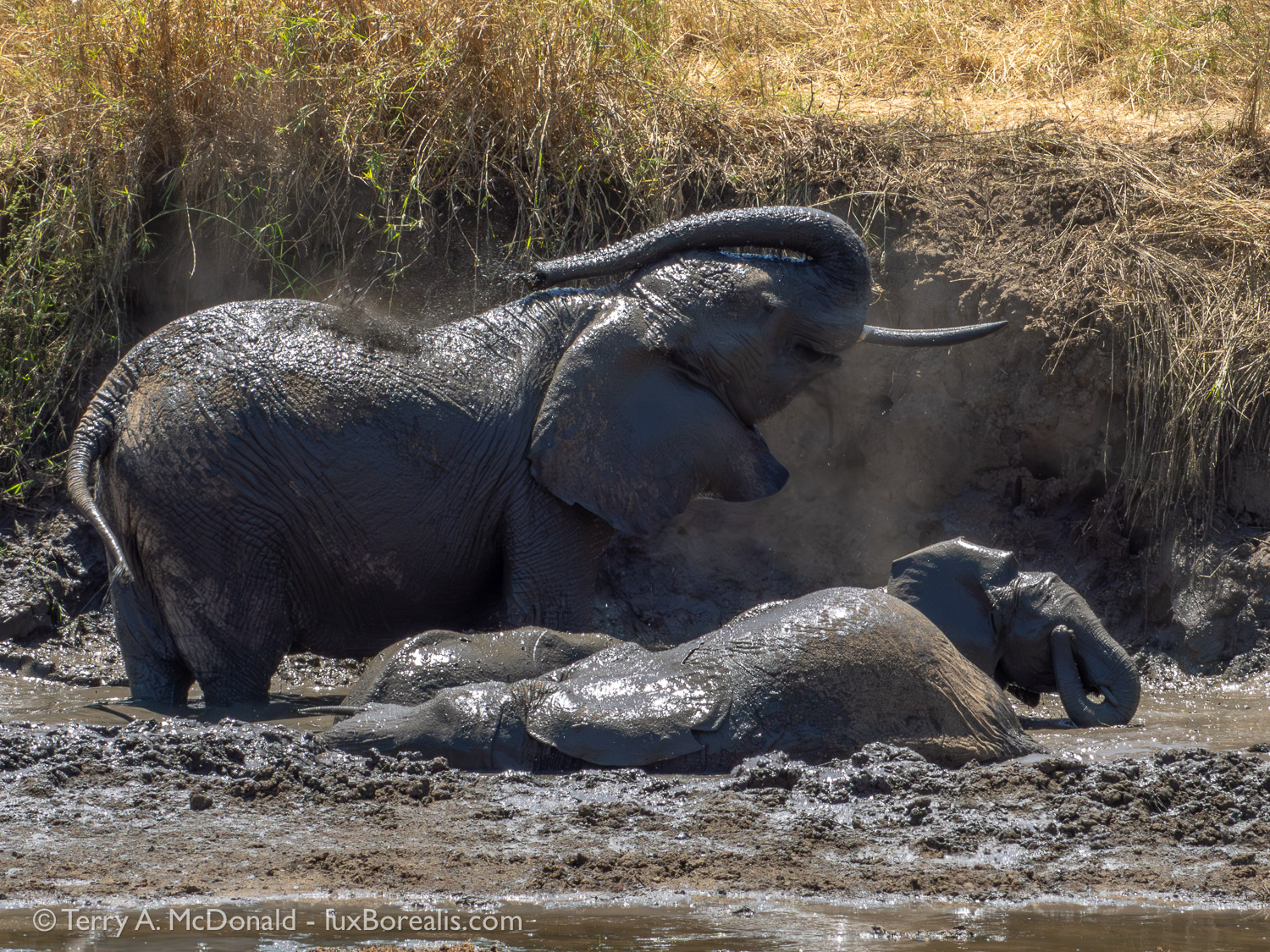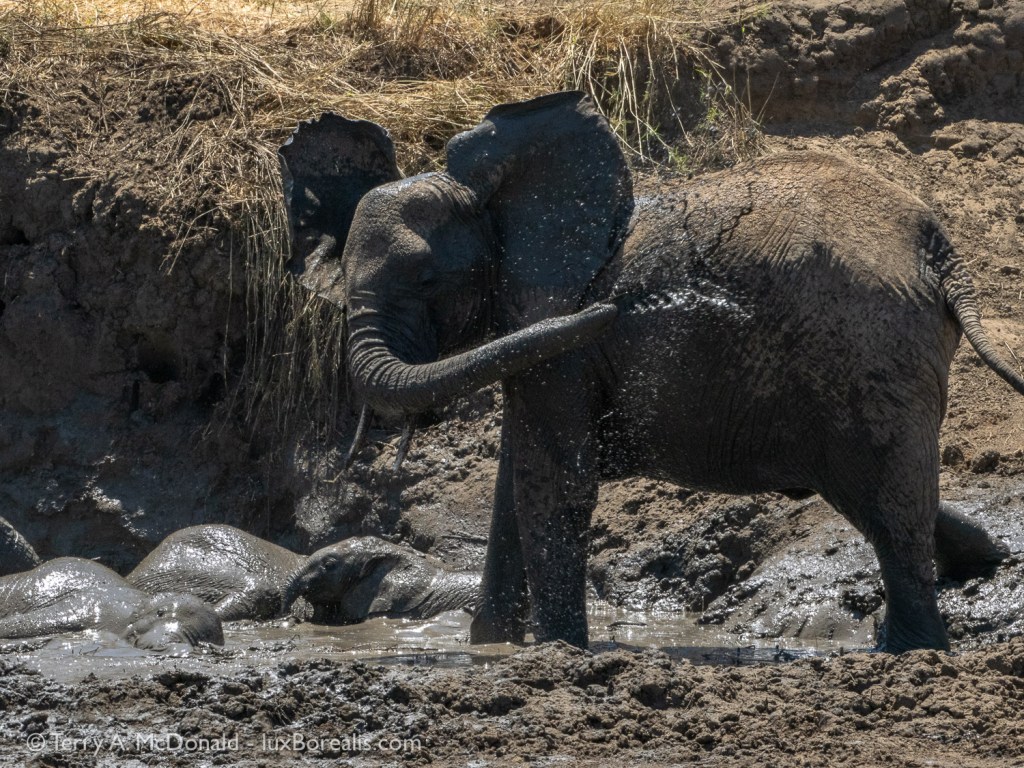 Just like Arusha National Park, Tarangire is full of surprises. However, once you get to know the park, you learn where to look, and the river is biggest draw. After crossing the bridge about 1km south of the lodge, we headed south taking each of the River Loops A, B and C. Where loop B meets the river there is an elephant mud hole. They’re not there everyday, but if the timing is right, like it was for us, you are treated to the happiest, most joyous hour of watching elephants of all ages flipping and flopping in the mud and splashing and spraying themselves with mud and water. Pictures and words don’t begin to describe the experience of pure fun and joy the elephants are having, trumpeting and calling to each other. Even my poor attempt at a 10-minute video doesn’t do it justice.