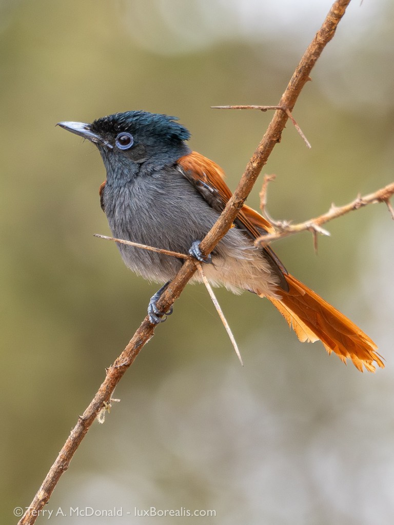 Despite its nondescript colouring, this bird is, hands down, the most interesting animal in Africa. Look at its scientific name. Now, look at its common name. This bird has formed a symbiotic relationship with humans—one of only a few animals to do so—classic mutualism. It finds nesting bees, uses a specific call to signal to traditional foragers like the Hadza people of Tanzania, then guides them to the bees where the Hadzabe enjoy the honey and the honeyguide enjoys the eggs, larvae and beeswax. This may also be the only example of co-evolution between an animal species and humans, that doesn’t involve domestication. Truly fascinating!! I was thrilled to see one and photograph it.