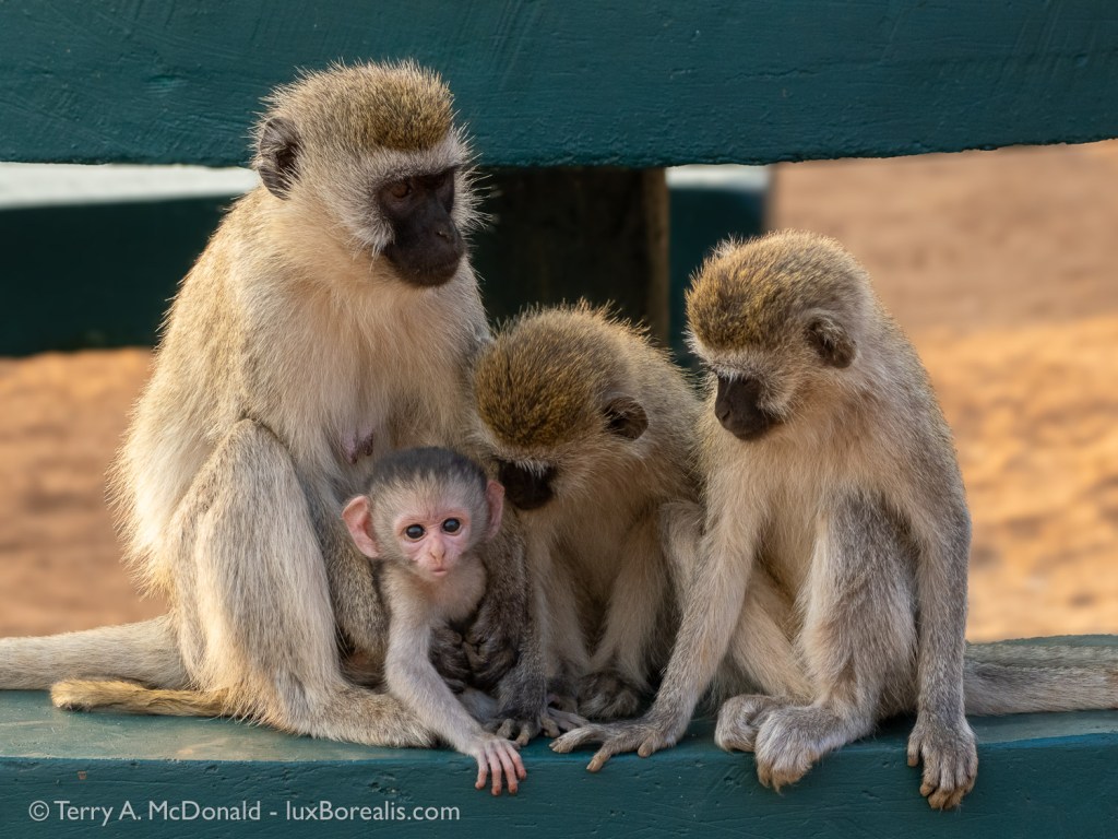We carried on up to the Matete Picnic Site high above the river, where we found resident and habituated Vervet monkeys with young. Years ago, long before the picnic site was formally developed into what it is now, we encountered mating lions, who just continued on doing their thing as we pulled up near them and watched and listened. Unforgettable really, in so many ways! This time, it was the intimate portraits of these monkeys and their young that made the stop so captivating.