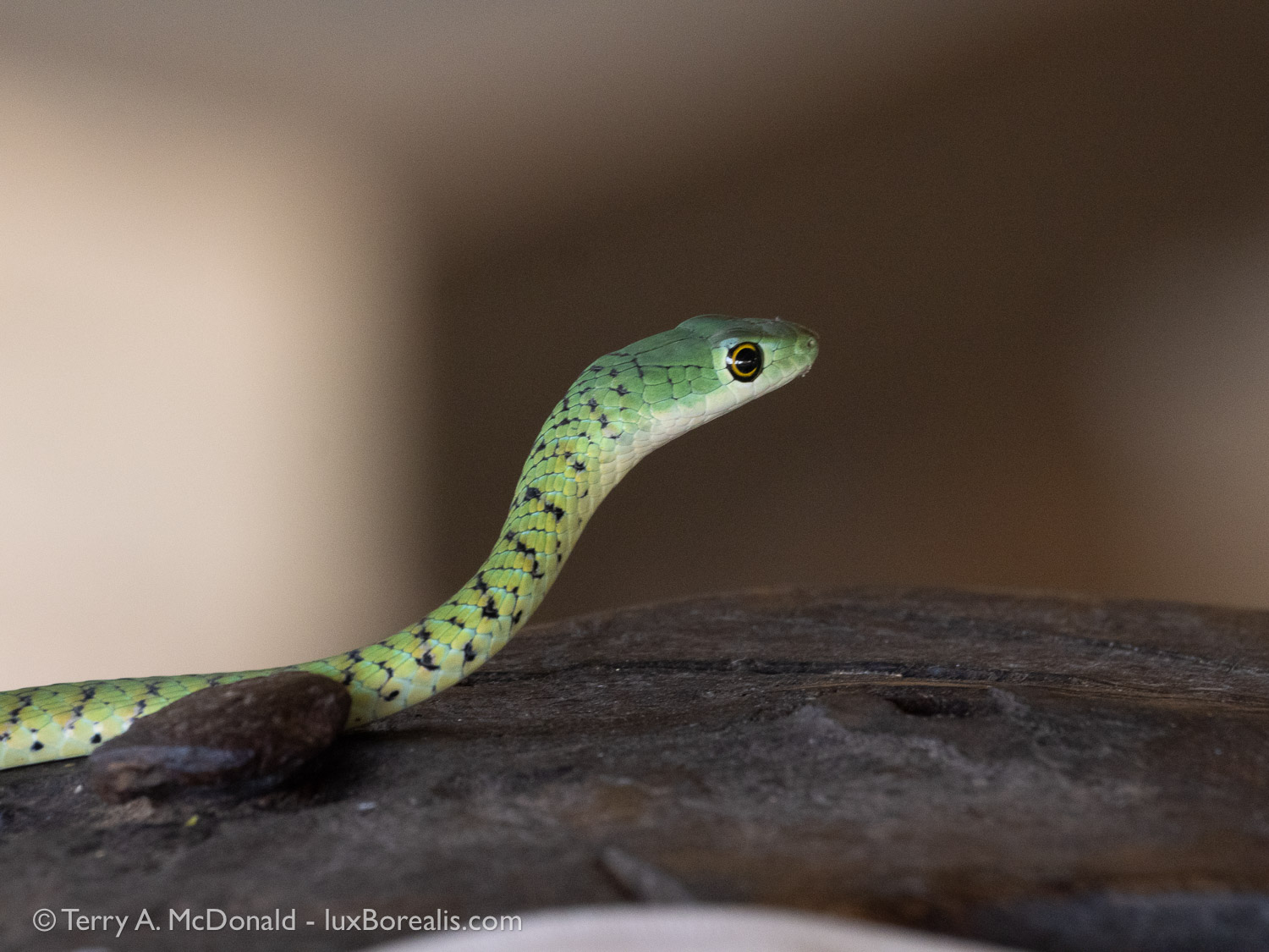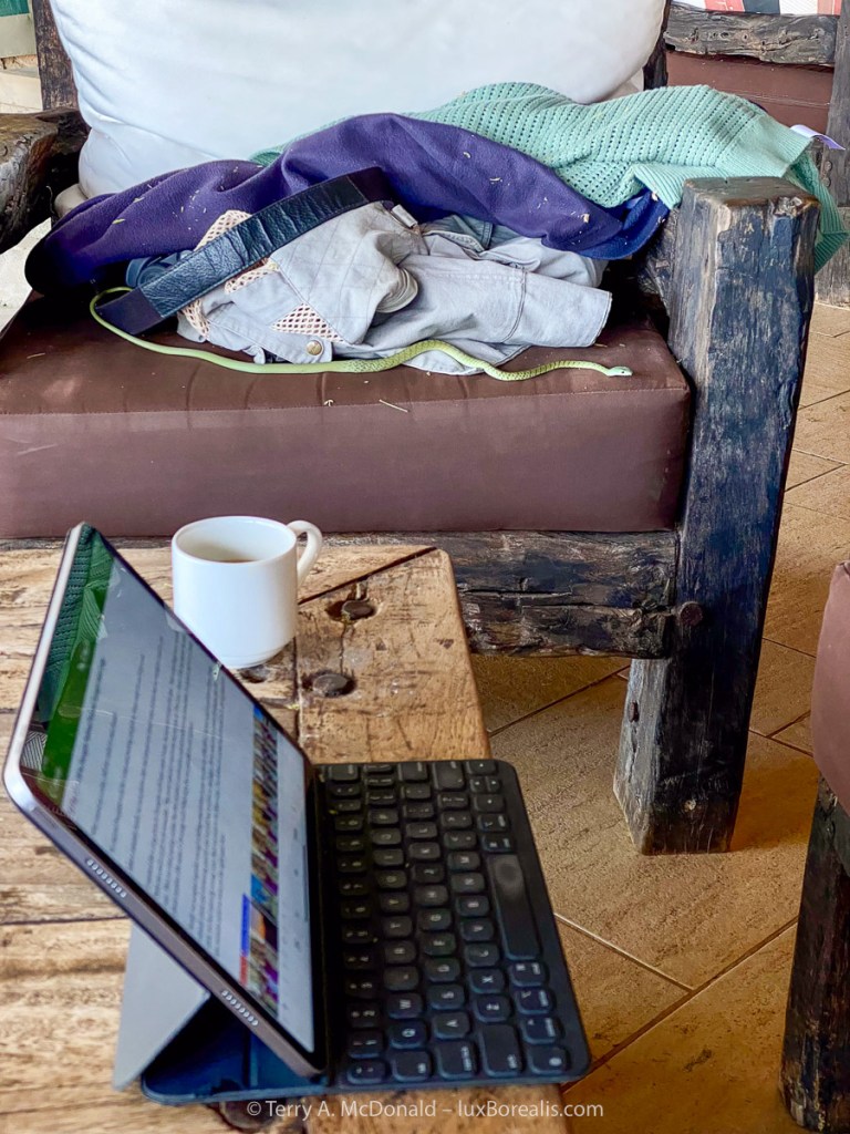While casually working away writing and editing, this ‘fellow’ showed up with much hoopla amongst the staff. I wanted to watch and photograph the snake; they just wanted to shuffle it out of the lounge ASAP. But they were very accommodating, waiting until I had the shot I wanted before carefully scooping it up in a bucket and taking it outside.