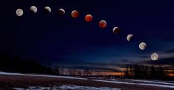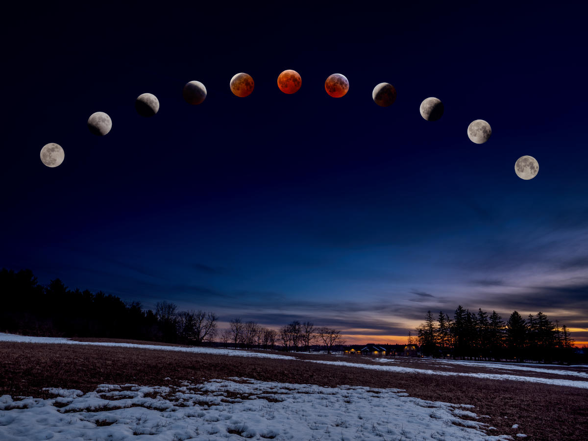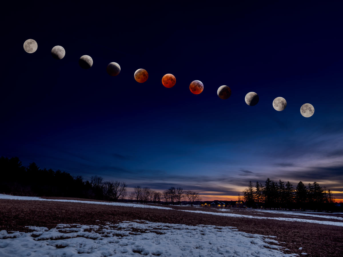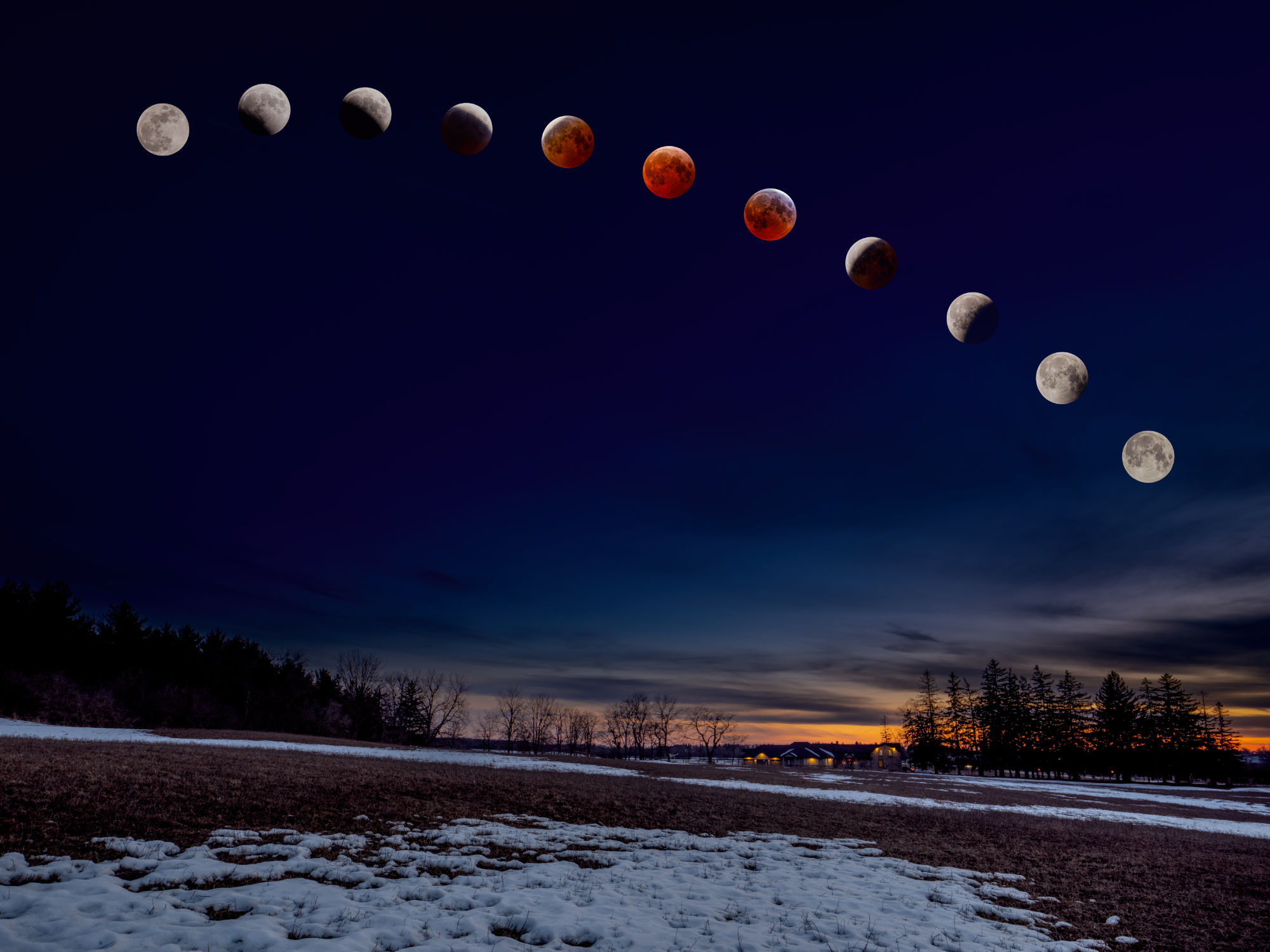 Total Lunar Eclipse—Landscape Composite Photographs around Guelph, Ontario