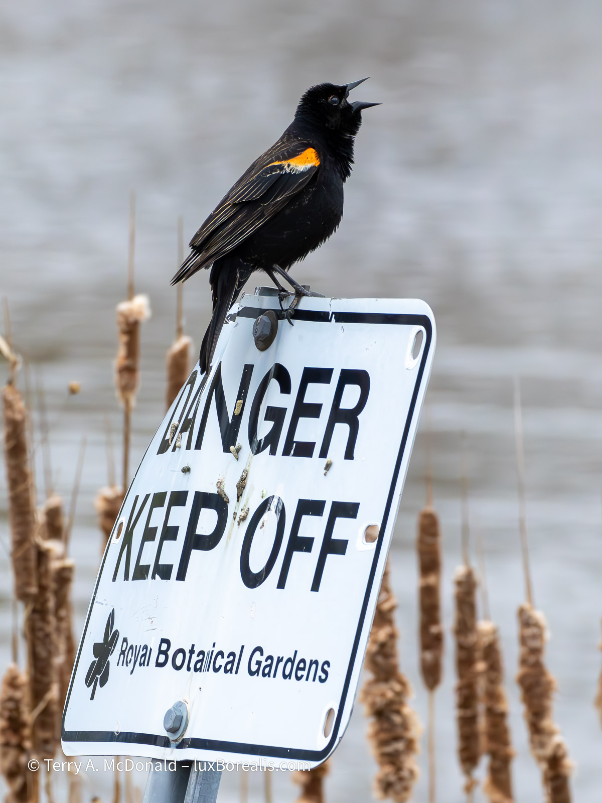 One thing that surprised me about the day was how approachable the birds were in both locations: Grindstone Marsh and the La Salle Trail along Burlington Bay. At Grindstone, the Tree Swallows and Red-winged Blackbirds were all around us and the Great Blue Heron did not fly off at our first movement, like they do around where I live. At La Salle, it wasn’t just that the chickadees and nuthatches, who are accustomed to being hand-fed, but also the cardinals, wrens, even a Red-tailed Hawk that seemed to lack the skittishness found almost anywhere else. The warblers were more evasive, but that’s to be expected as they are just passing through.