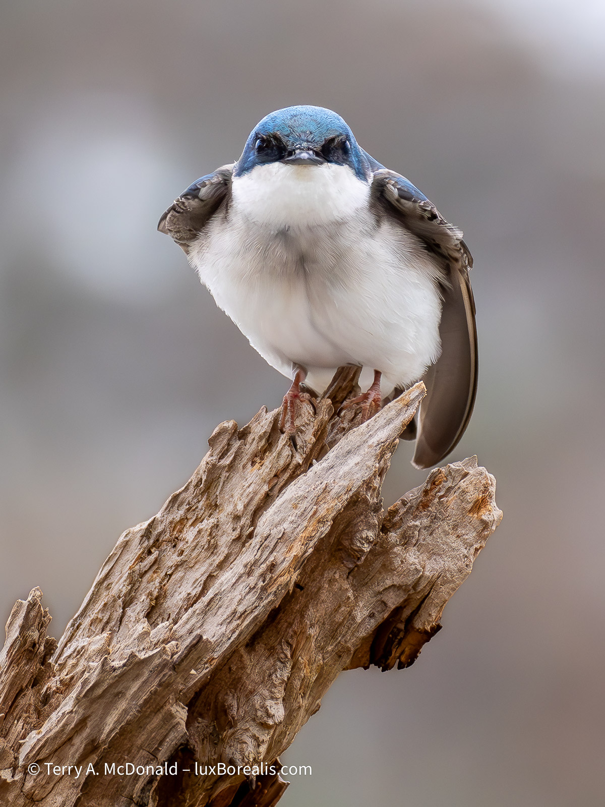 Grindstone Marsh is a fairly small area, but with pathways that allow photographers to move around the marsh to capture different angles. The diversity is good, with many of the common waterbirds moving in an outl: Common Terns, Canada Geese, Mute Swans, Cormorants, plus a number of tree birds and, on better days, Ospreys feeding. Tom told me how this is quite a draw for the long lens crowd, with up to four osprey feeding at once, particularly when teaching the youngsters how to feed. Even under the dreadful conditions we had, we were both surprised at how quickly two hours passed, especially as we patiently waited for tree swallows to do something more than just perch.