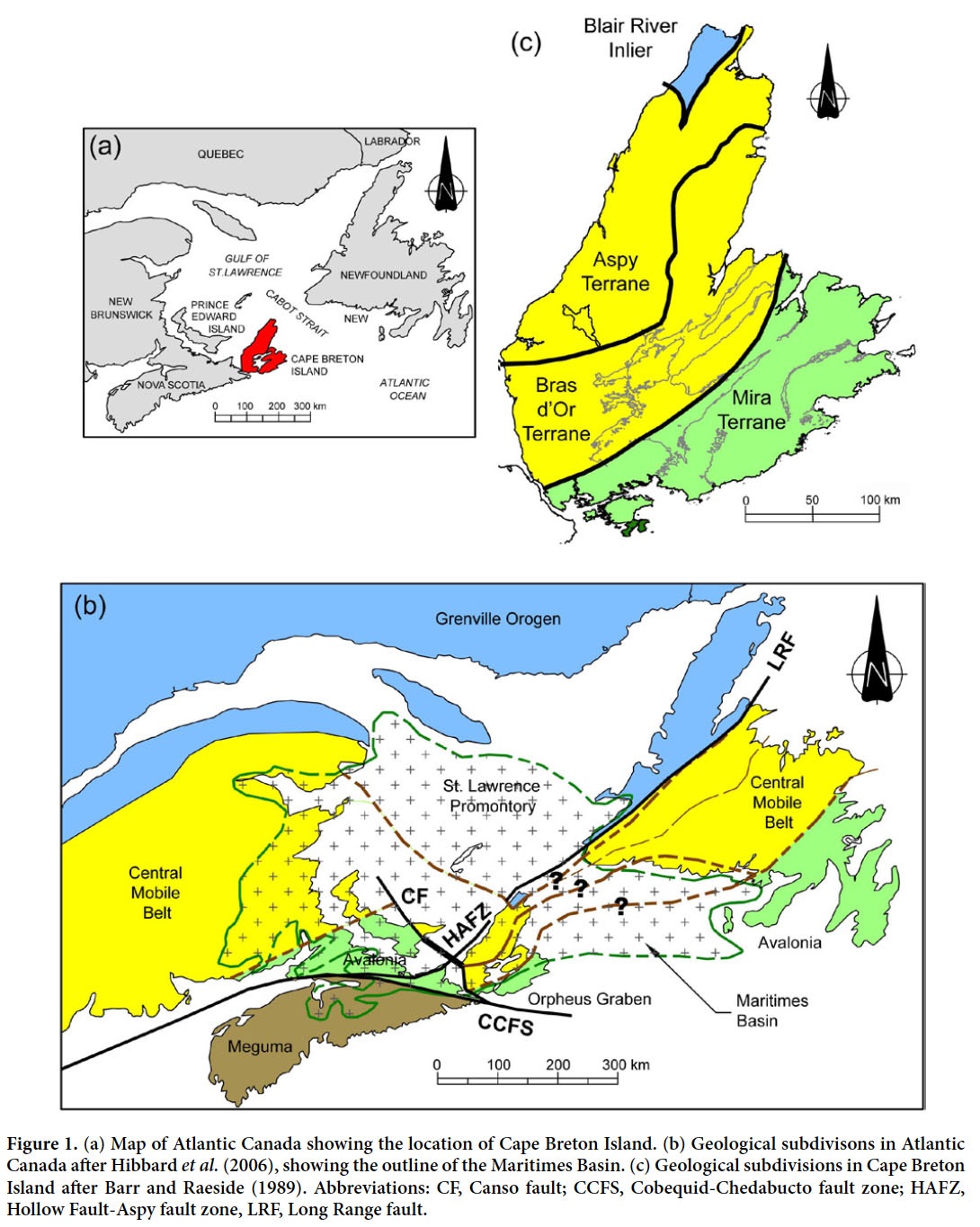 Wow! I’d forgotten how beautiful the Cape Breton Highlands are: steep-sided, glaciated flat-topped hills with deep valleys, green with mixed forests plunging down into an ocean so clear and blue. Geologically it’s a smorgasbord of pieces of Earth’s crust jammed together over the last billion years: ancient Canadian Shield in the northwest from the formation of the Laurentians; part of a volcanic belt formed off South America in the centre; and a section of a volcanic belt from what is now North Africa in the southeast; along with a smattering of granitic plutons from 500mya.
