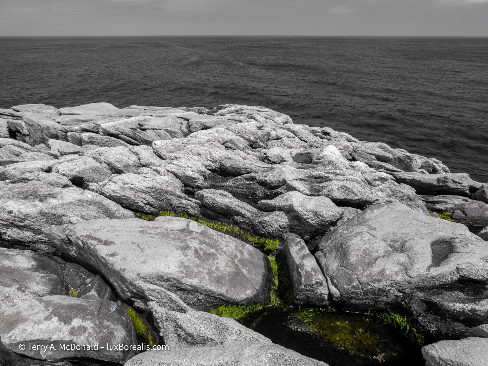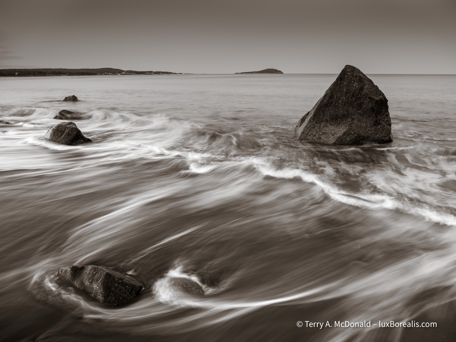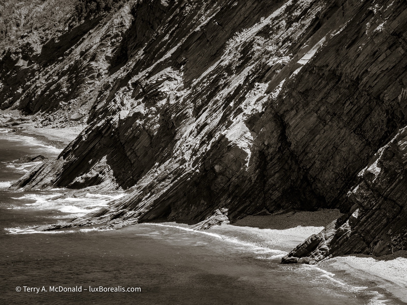 We made trips up to the north end of Cape Breton, to Bay Saint Lawrence and Meat Cove and around to the even more dramatic western coast. But even with the direct wind across the Gulf of St. Lawrence, the rollers coming ashore at Meat Cove, were not the dramatic crashing waves that would have added to this photo.