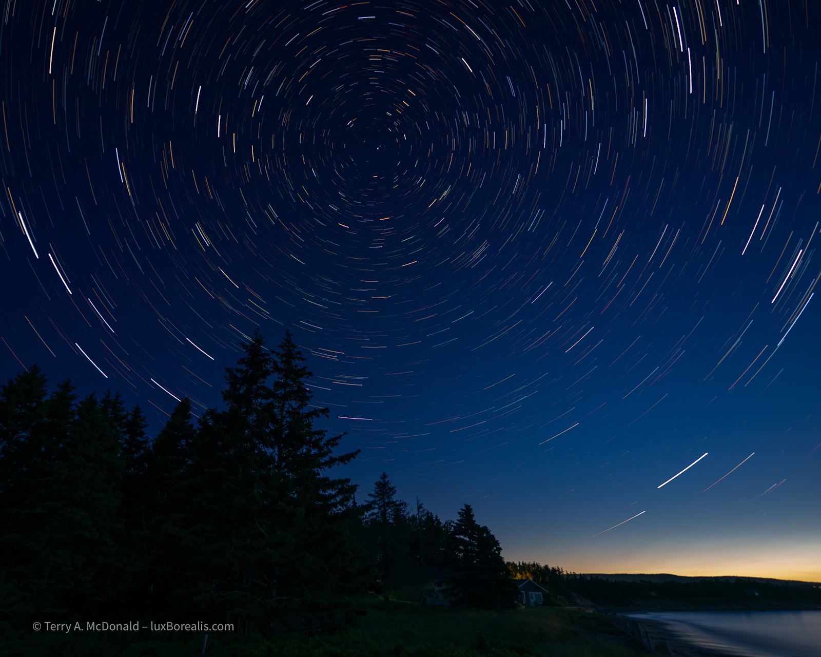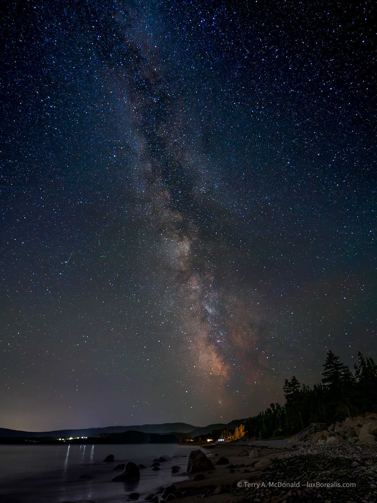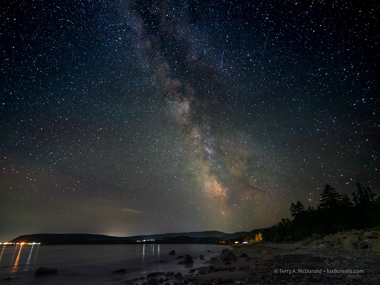 On our first night in Cape Breton, I (finally) had an opportunity to work on some astrophotography. At 1:30am I headed down to the beach with my tripod, my folding chair and equipment—OM-1 with the Leica DG Summilux 9mm/1.7 on, and an extra battery. I didn’t bother to attach the HLD-10 Battery Grip. Given the chill temperature, the core and sensor wouldn’t heat up too much from battery drain.