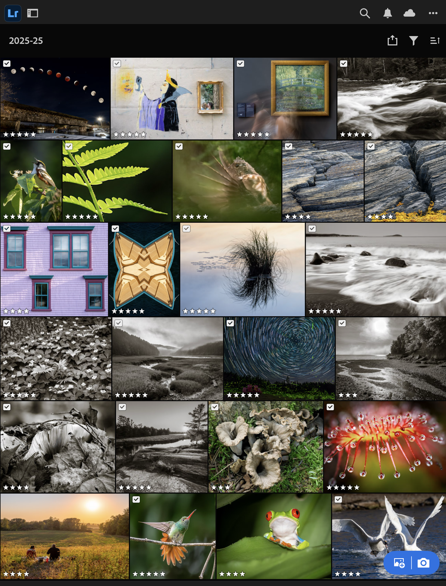 By carefully considering which duplicates and similar photographs to eliminate, I am managed to get that 42 down to 25; which is where the real work began. The process was simplified in Lightroom by creating albums: 2025-Best → 2025-25 → 2025-12.