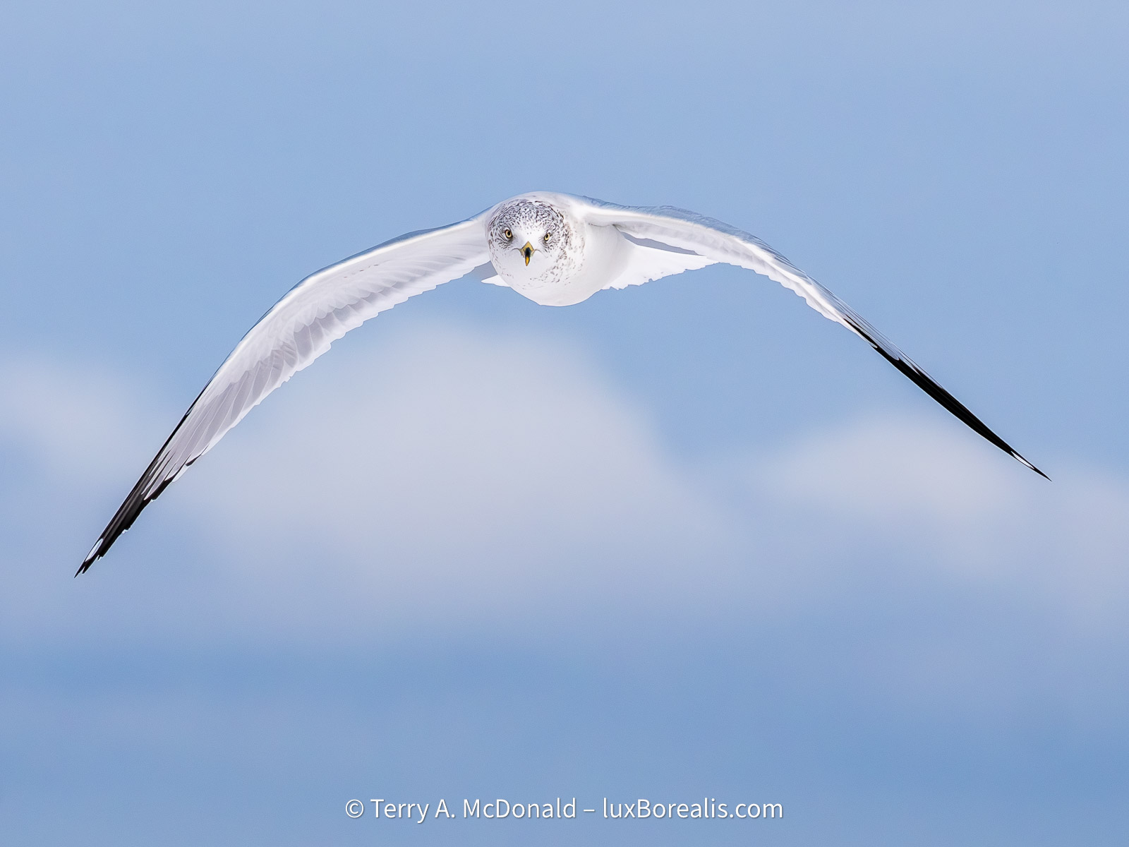 Often called sky rats, for good reason, gulls are an elegant bird in flight. In this case, I caught him/her looking at me—always a bonus when photographing wildlife.