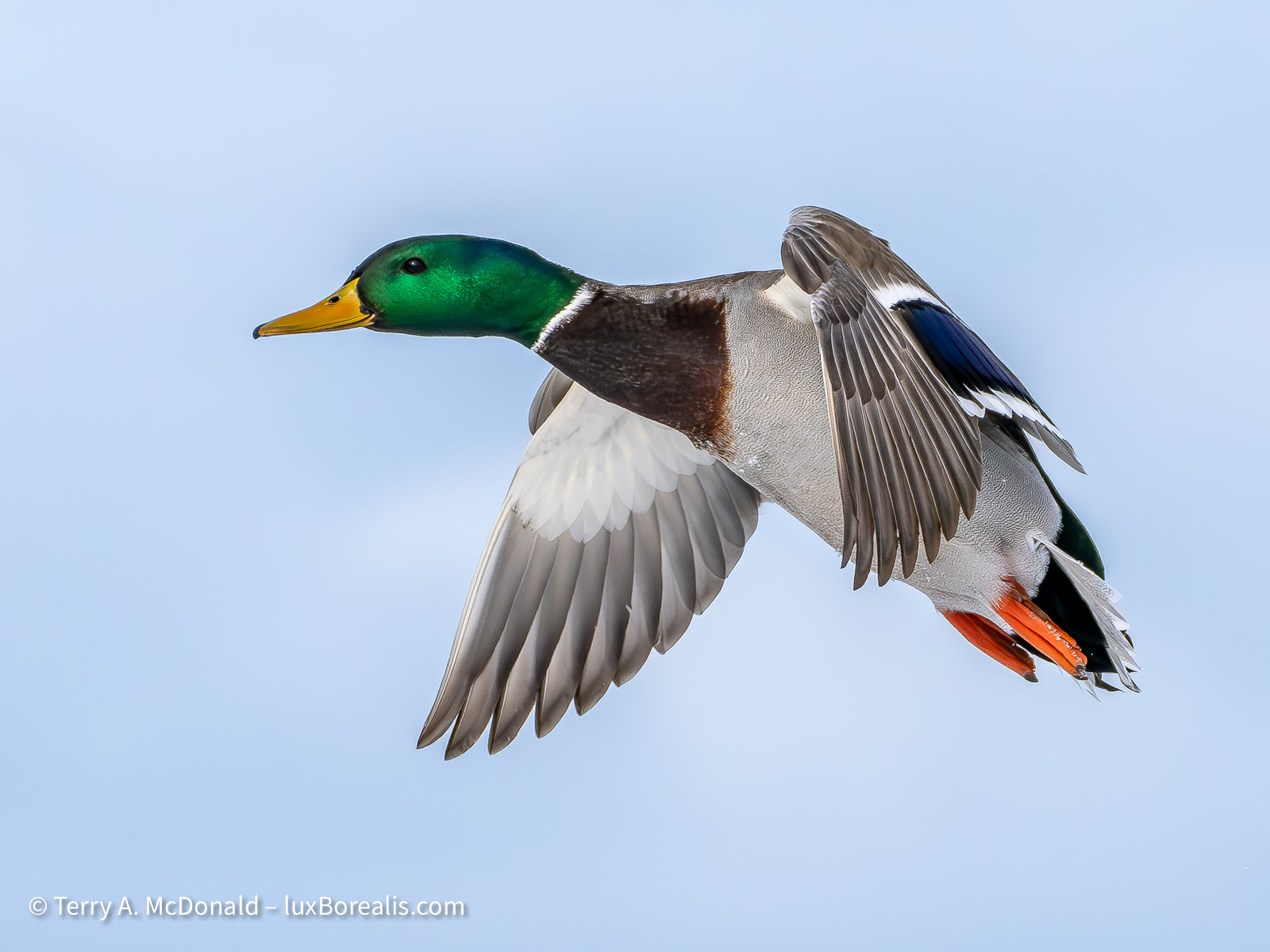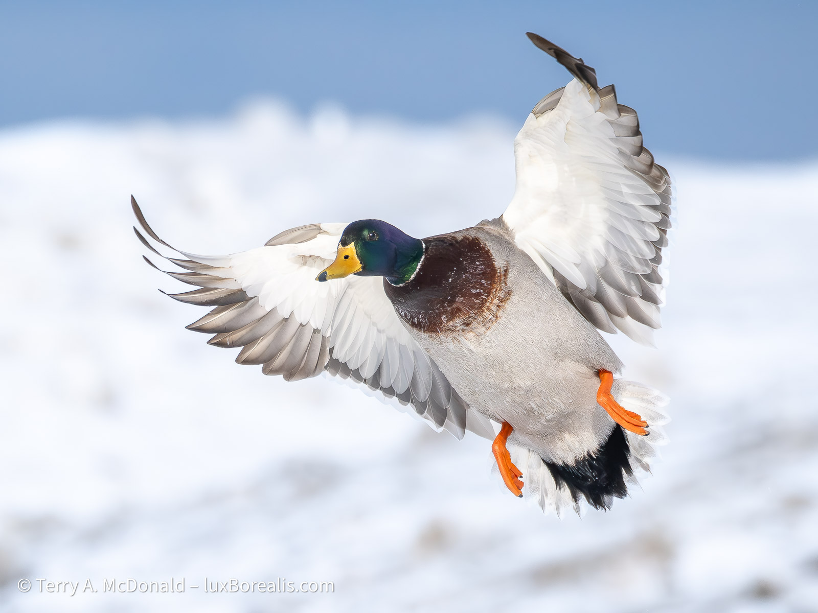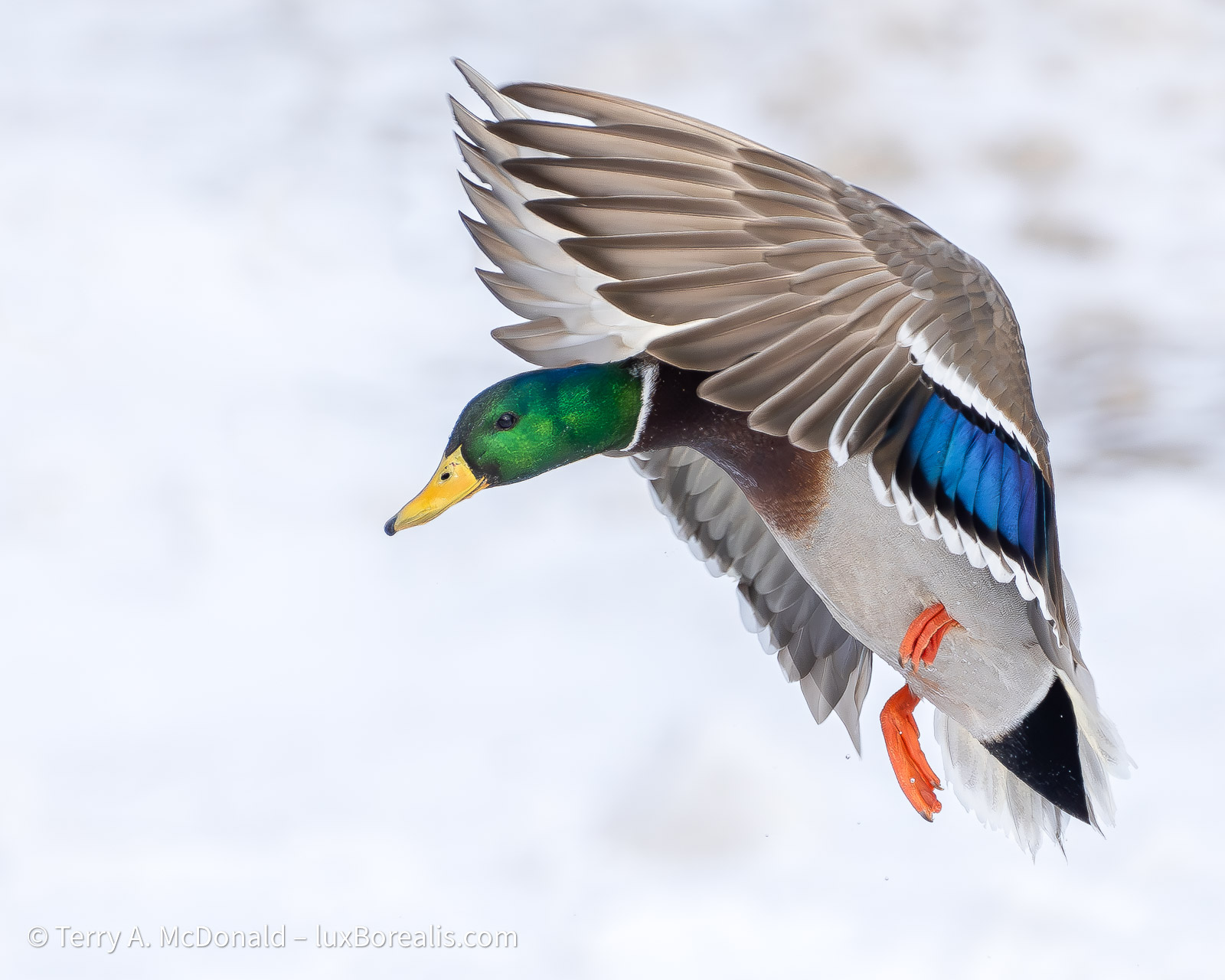The mallards were often flying in pairs; capturing two in the same plane of focus took many attempts.