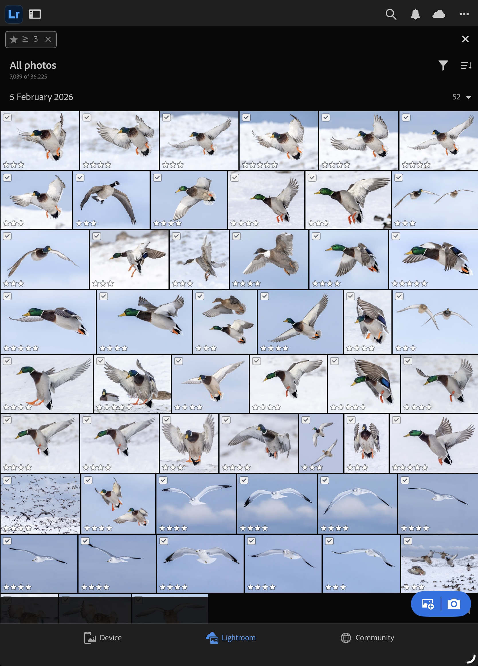 The question now becomes, what do I do with the 855 out-takes? Given that I have at least one decent photograph of each of the different species present—mallard drake, mallard hen, ring-billed gull, and Canada goose—I will delete the 855. No use taking up Adobe Cloud space for sub-optimal photos!