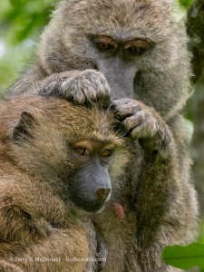 2. Olive Baboons Grooming (Papio anubis): Also made in Arusha National Park, this adult and juvenile would not sit still. Mom was grooming the kid, and when do kids sit still, especially when having their hair picked over! It was an overcast morning which, under a dark forest canopy, only added to the dimness of the scene. As well, there appears to be some camera movement, as I can see some hairs with double-blur. The 100-400 was at 210mm (420mm efov), but the dim lighting demanded ƒ6 @ 1/50, ISO 3200—not ideal. This image is a centre-crop of 2916x3888px within a horizontal frame.