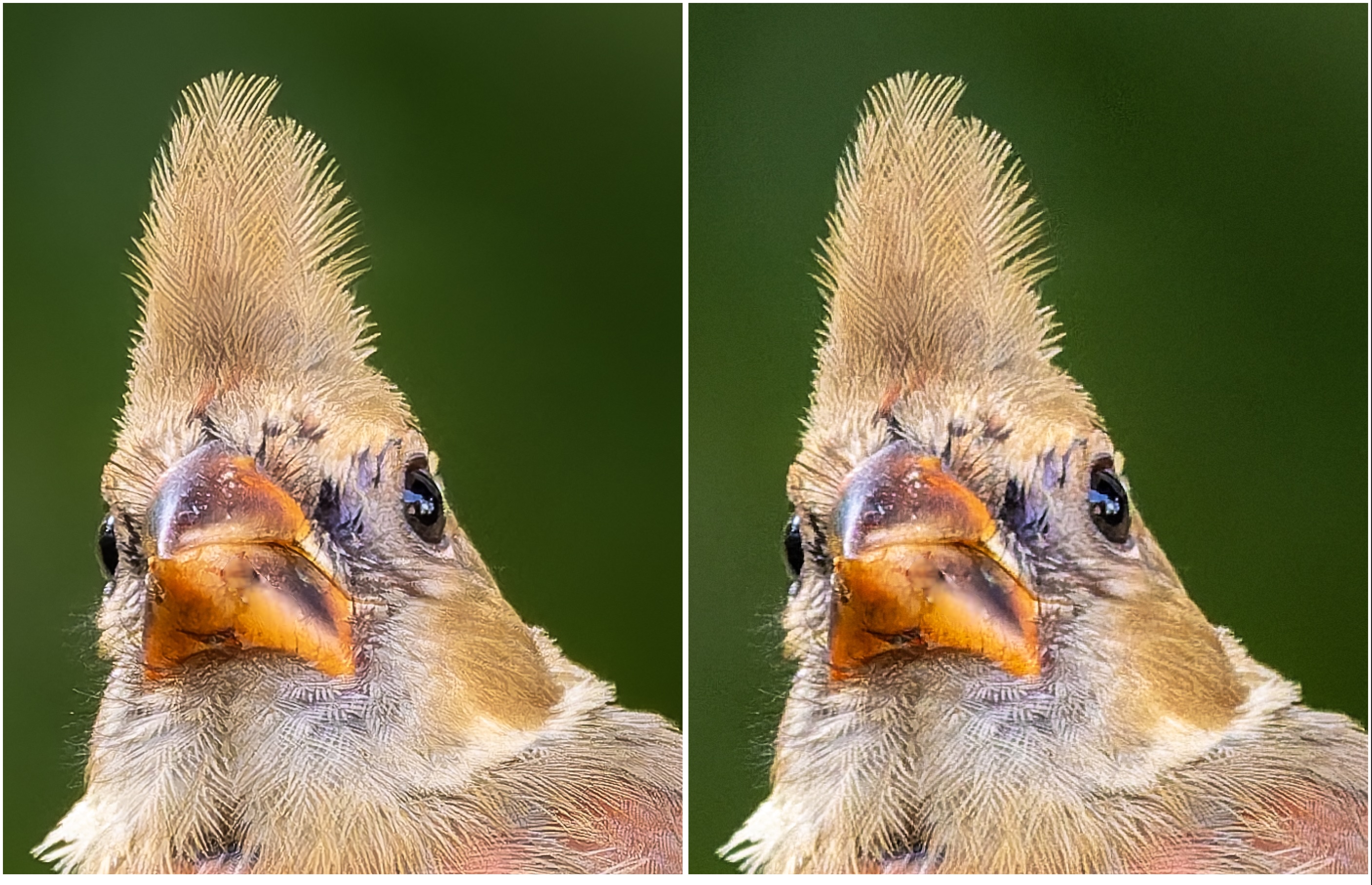 Interestingly, when I passed one of my High ISO files through DxO PureRAW 5, I saw a decrease in image quality using the default settings. I used the ISO 6400 Junior Cardinal photo from my Raw File Optimization comparison article.