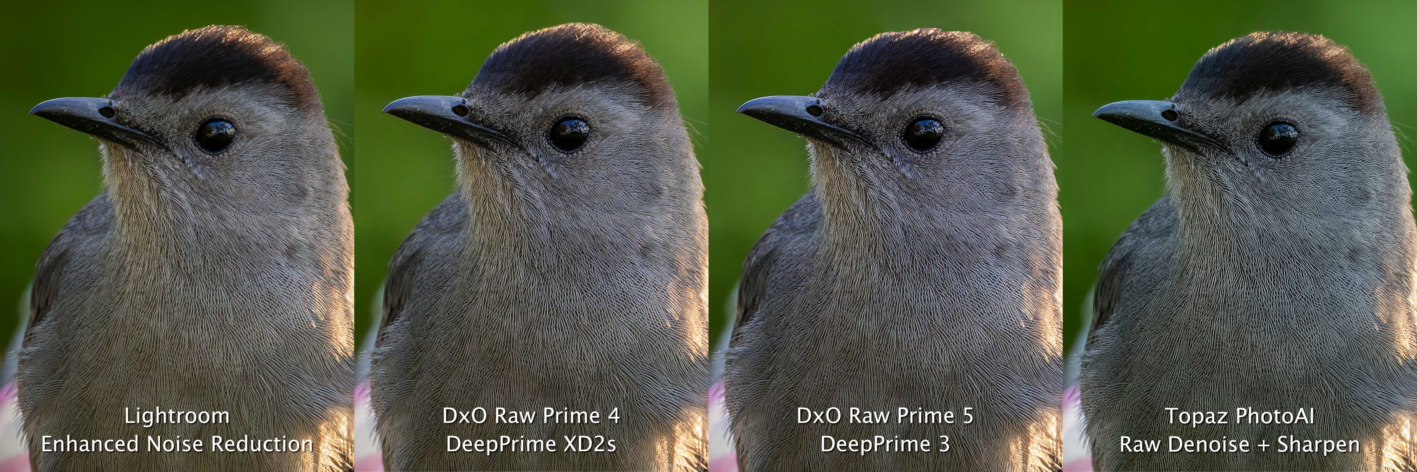 Here is the same Catbird image I used in my first article comparing the various methods of raw optimization, processed in PureRAW 4 and 5.