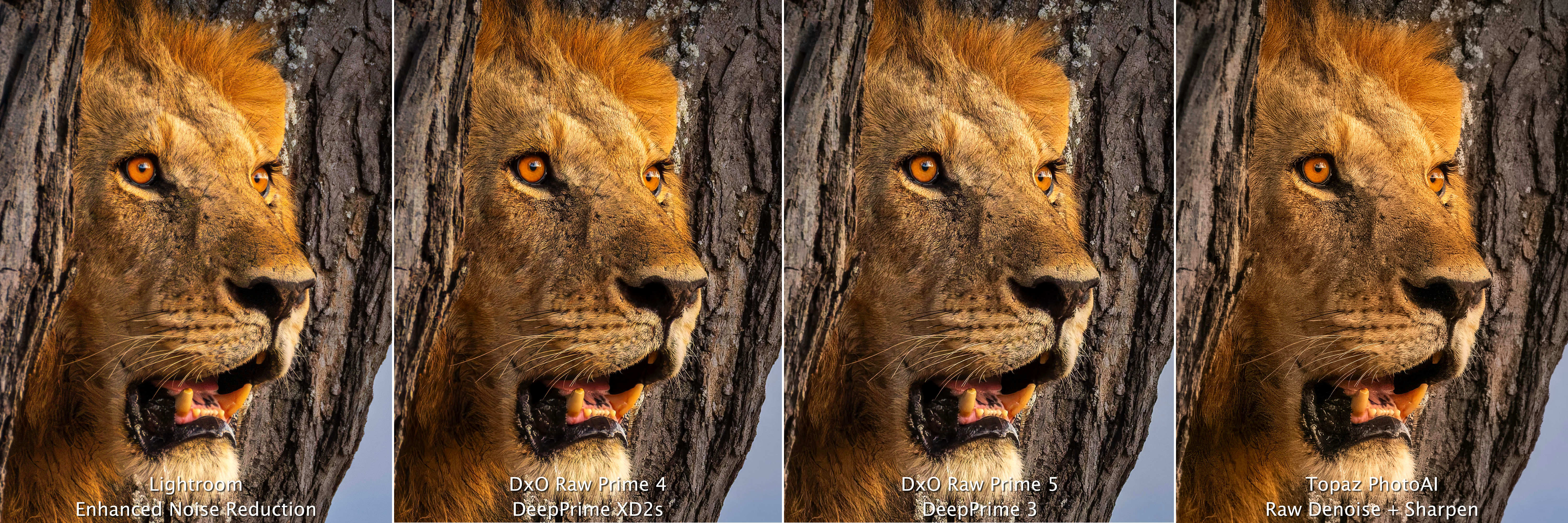 And here is the image compared to Lightroom Enhanced Noise Reduction and Topaz PhotoAI.